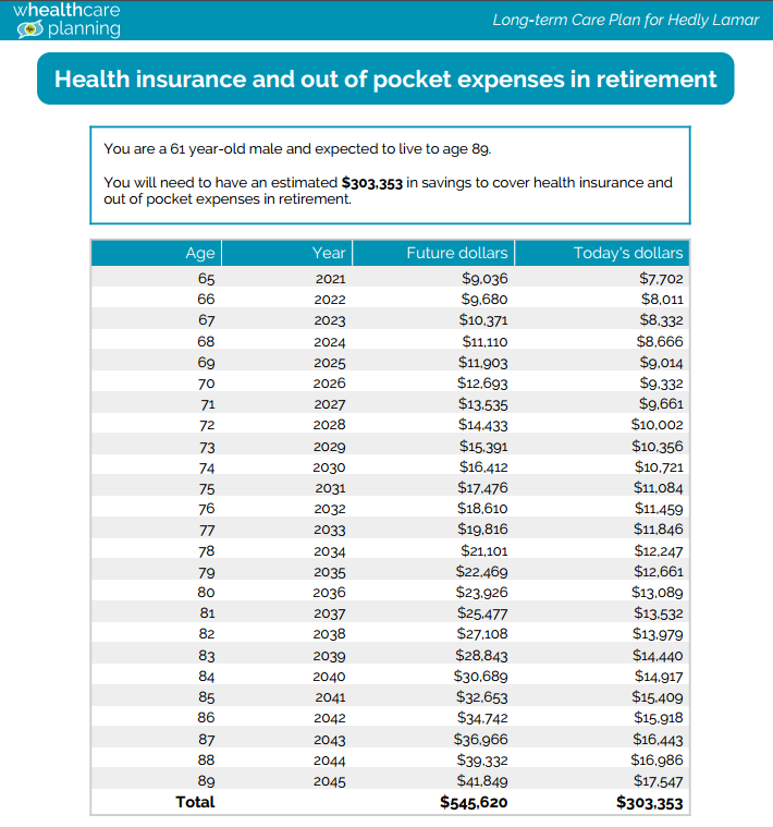 These health insurance and out-of-pocket expense estimates can be easily copied from the Word or PDF versions of the Plan into Excel or a financial planning software application.